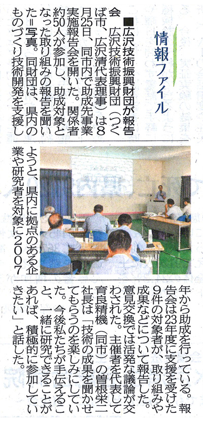令和5年度の助成先の事業実施報告会に関する記事が茨城新聞に掲載されました。
